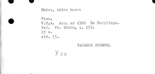 //// Sk är a, sk är a ha vr e //// • Visa.. //// Y.M.A. Acc. nr 4388 Sn Harplinge. Ref. Fr. Ström, s. 159. //// 13 v. sid. 51* //// 0 //// VARBERG MUSEUM» //// y 3b ////