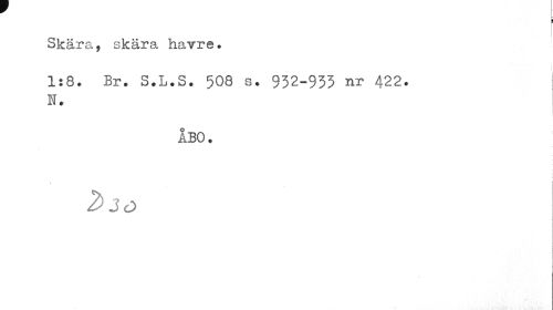 //// Skära, skära havre. //// 1:8. Br. S.L.S. 508 s. 932-933 nr 422. N. //// I //// åbo. //// I ////