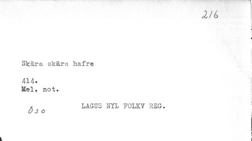 //// 2/é> //// , I //// I ii //// i //// Skära skära hafre //// 414- i //// Mel. not. //// < LAGUS ML FOLKV REG. //// Oj o //// I //// ¦ //// i ////