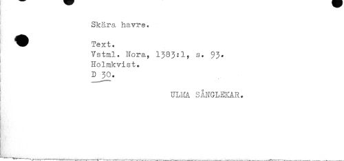 //// Skära havre* //// Vstal. Nora, 1383:1, 3. 93* Ho linkvist . //// D 30. //// ULM SÅNGLEKAR. //// —- ffW— —---*---i*ft«--___^___^___ ___ ___ ////