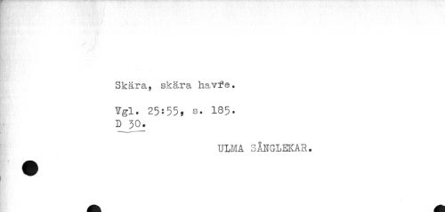 //// v" //// Skära, skära havfe. //// Vgl. 25:55, s. 135. //// D 50. //// ULMA SÅNGLEKAR. ////