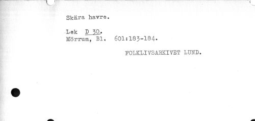 //// Skära havre. //// • Lek D...20.. //// Morrum, Bl. 601:183-184. //// FOLKLIVSARKIVET LUND. //// v ////