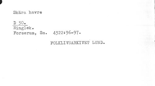 //// Skära havre ! //// i //// ; i //// D 30. //// — 11 ¦ ¦¦ % //// Ringlek. //// Forserum, Sm. 4322:96-97• //// FOLKLIVSARKIVET LUND. //// yj ////