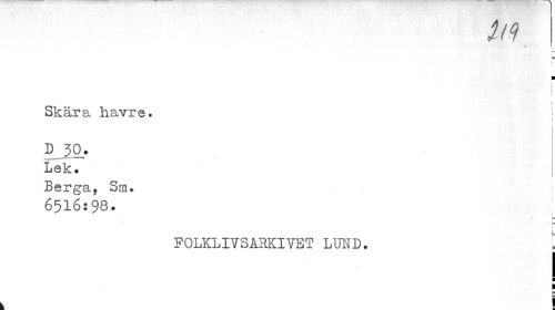 //// 1( 9 //// ¦ //// i j //// i //// Skära havre. j //// i i i //// D JO. Lek. //// Berga, Sm. //// 6516:98. I //// ä //// POLKLIYSÅHKIVBT LUND. I ////
