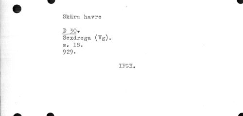 //// Skära havre D 30^ //// Sexdrega (Vg). s. 18. //// 929. //// IFGH. //// V ////
