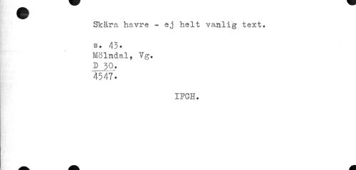 //// m //// Skära havre - ej helt vanlig text. s. 43' //// Mölndal, Vg. D 30. //// 4547. //// IFGH. ////
