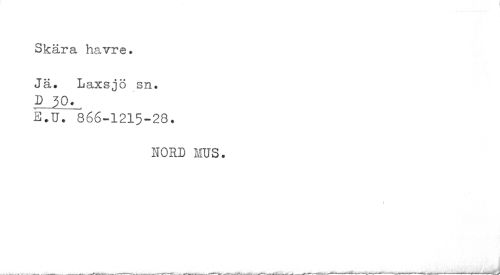 //// Skära havre. Jä. Laxsjö sn. //// D 50. //// E.U. "866-1215-28. //// HORD MUS. //// I ////
