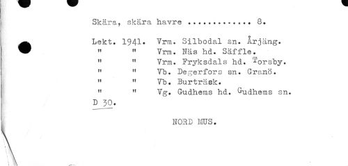 //// Skära, skära havre . . ... 8* //// •Lekt. 1941* Vrm. Silbodal sn. Årjäng. » » Vrm. Näs hd. Säffle. //// 11 " Vrm. Fryksdals hd. 'J-orshy. //// " " Vb. De ger fors sn. Granö. //// " " Vb. Burträsk. //// " " Vg. Gudhems hd. ^udhems sn. //// D 50. //// NORD MUS. //// • m \ \ //// \ //// \ \ //// \ //// > A l \ //// I \ ////