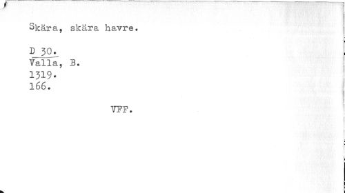 //// Skära, skära havre. Valla, B. //// 1319. 166. //// V??. 1 //// I //// I ////