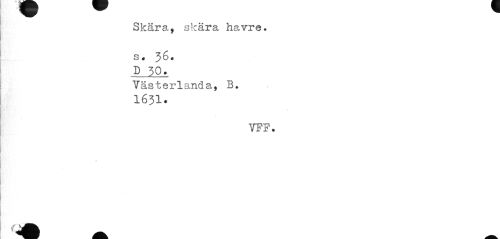 //// Skära, skära havre, s. 360 //// .9...3.0. //// Västerlanda, B. 1631. //// VFF. //// » ////