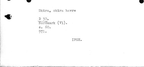 //// Skara, skära havre //// ^^ D 30. //// Nordmark (Vi). s. 60. //// 971. //// IFGH. //// Ii*, rW 1 1K V i V . . 1 s. . vZAr'"_ . ---—-*___--___r ___, tfkJM^.---——--- ////