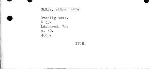 //// Skära, skära havre //// ^fc Ovanlig text. //// D 10, //// Långared, Vg. //// s. 40 • 46OO. //// IFGH. ////