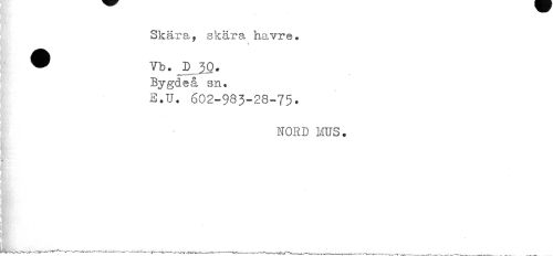 //// Skära, skära havre. //// 9 //// ® Vb. D JO. //// Bygdeå sn. //// E.U. 602-983-28-75. //// HORD MUS. ////