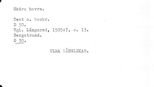 //// Skära havre. //// Text o. beskr. D JO. //// Vgl. Långared, 1505*79 s* 13* //// Bergstrand. //// B_30. //// ULM SÅHGLEKAR. //// • » //// k ////