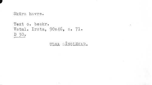 //// Skära havre* Text o. beskr. //// » //// Vstml. Irsta, 90:46, s, 71. D 30. //// ULM SÅNGLEKAR. ////