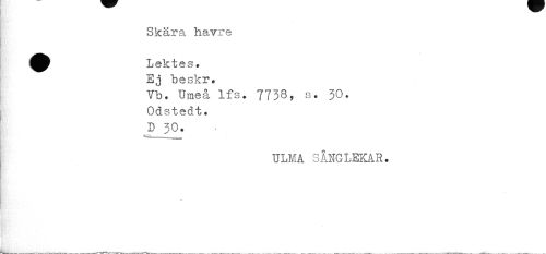 //// Skära havre //// Lektes. Ej beskr. //// Vb. Umeå Ifs. 7738, s. 30. Odstedt. //// ? 32: //// ULMA SÅNGLEKAR. ////
