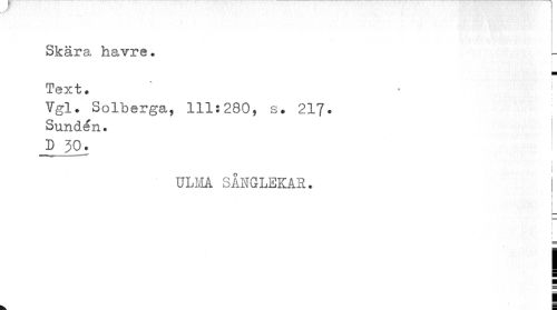//// Skära havra. //// I i i //// Text * //// Ygl. Solberga, 111:280, s. 21?. Sunden. //// -2 _5o. ! //// ULM SÅNGLEKAR. j //// i //// L _ //// i i i //// i //// 5 ¦ //// | ////