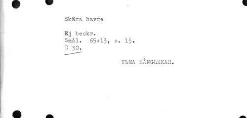 //// Skära havre Ej beskr, //// Srnål. 65:13, s. 15» D 30. //// ULM SÅNGLEKAR» ////