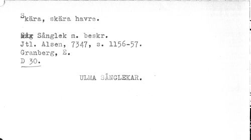 //// t I //// °kära, skära havre» //// r 1 //// Såg Sånglek itu beskr. //// Jtl. ålsen, 7347» s. 1156-57• //// Granberg, E. D 30. //// ULMA SÅNGLEKAR. //// I //// I //// i ¦ //// j ////