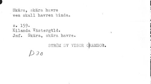 //// ! //// U p— //// Skära, skära havre f //// 7 ! //// vem skall havren binda. //// t //// s. 159. i //// Kilanda Västergtld. , | //// Jmf. Skära, skära havre. i //// j //// ¦ //// \ //// STRÖM SY VISOR C^AMSOH. i //// t f ////