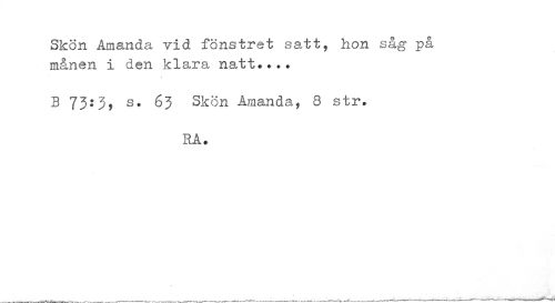 //// Skön Amanda vid fönstret satt, hon skg på månen i den klara natt»... //// B 63 Skön Amanda, 8 str. //// RA. ////