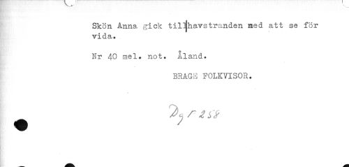 //// Skön Anna gick til]jhavstranden med att se för vida» //// Nr 40 mel» not. iland. //// BRAGE FOLKVISOR. ////