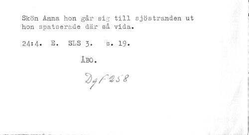 //// i //// i f //// Skön Anna hon går sig till sjöstranden ut j //// hon spatserade där så vida. //// 24^ 4* E. SLS 3. s. 19. J //// i r //// ÅBO? i //// ! ////