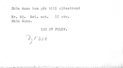 //// Skön Anna hon går till sjöastrand //// Nr. 82. Mel. not. 17 str. Skön Anna. //// 100 SY FOLKY. ////