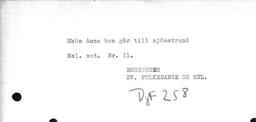 //// Skön Anns, hon går till sjöastrand Mel. not. Nr. 11. //// BERGGREEN //// SV. FOLKESANGE OG MEL. ////