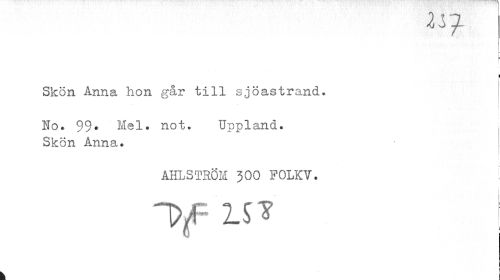 //// 2 3 //// fe i //// Skön Anna hon går till sjöastrand. j //// No. 99» Mel. not. Uppland. Skön Anna. //// ÅHLSTRÖS 300 FOLKV. //// IS 7 | //// ¦ //// \ i ////