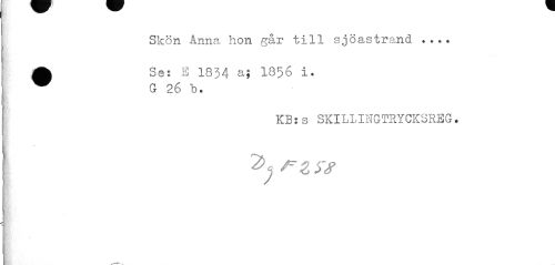 //// Skön Anna hon går till sjöastrand ... //// tfk Se: E 18J4 aj I856 i. //// W G 26 b. //// KB:s SKILLINGTRYCKSREG. ////
