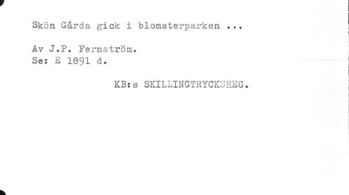 //// Skön Gårda gick i blomsterparken Av J.P. Fernström. //// Se: £ 1891 d. | //// ¦ //// KB:s SKILLINGTRYCKSHEG. //// i i //// • i //// i //// i //// . //// i //// ! //// k ////