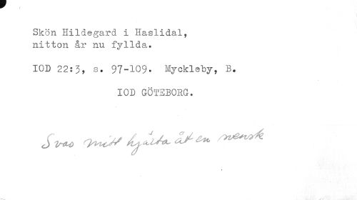 //// Skön Hildegard i Haslidal, nitton år nu fyllda. //// IOD 22:3, s. 97-109. Myekleby, B. //// IOD GÖTEBORG. //// ^ ^ ^^ ////