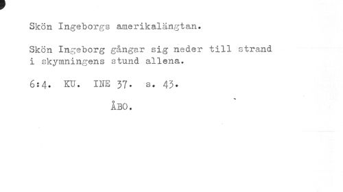 //// Skön Ingeborgs amerikalängtan. //// Skön Ingeborg gångar sig neder till strand i skymningens stund allena. //// 6:4. KU. IFE 37. s. 43. //// ÅBO. ////