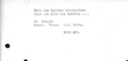 //// — //// Skön som Cyprens härskarinna Ljus och mild som Cynthia ... //// Jä Bodsjö. //// Mskpt. Visor. E.U. 37324. //// HORD MUS. ////