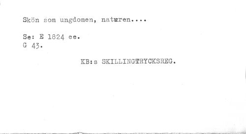 //// Skön som ungdomen, naturen... //// Se: E 1824 ee. G 43- //// KB:s 3KILLING5RYCKSREG. //// ¦ ////
