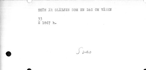 //// SKÖN ÄR GLÄDJEN SOM EN DAG OM VÅREN //// 33 //// E 1867 h. //// A J 1^0 ////