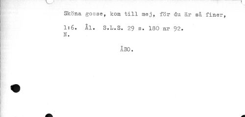 //// Sköna gosse, kom till mej, för du är så finer, //// 1:6. Ål. S.L.S. 29 s. 180 nr 92. N. //// åbo. ////