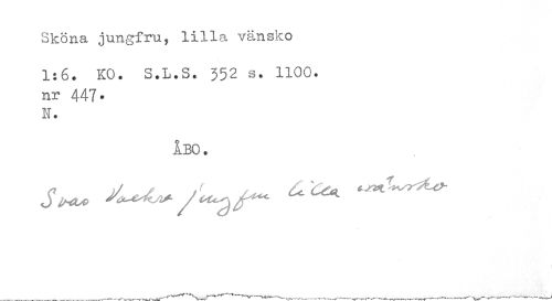 //// Sköna jungfru, lilla vänsko //// 1:6. KO. S.L.S. 352 s. 1100. nr 447. //// sr. //// ÅBO. //// ---~---T \w ' ^V^-W*___ „ __ _ . ////