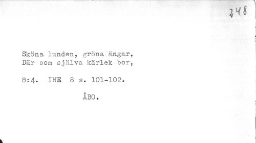 //// }Ht //// i //// Sköna lunden, gröna ängar, Där som själva kärlek bor, //// l : //// 8:4. I1TE 8 s. 101-102. //// b //// ÅBO. //// 5 //// J ////