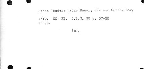 //// Sköna lundens gröna ängar, där som kärlek bor, //// 13:2. BE, PE. S.L.S. 35 s. 87-88. nr 78. //// ÅBO. ////