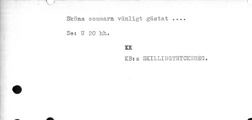 //// Sköna sommarn vänligt gästat Se: U 20 hh. //// XX //// KB: s SKILLINGTBYCKSREG. ////