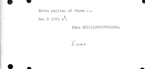 //// Sköna yngling på vågen ... Se: S 1383 a4. //// KB:s SKILLINGTRYCKSREG. //// c //// J ////