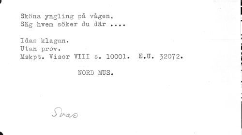 //// i //// Sköna yngling på vågen, J //// Säg hvem söker du där •..• //// Idas klagan. ' //// Utan prov. i //// Mskpt. Visor VIII s. 10001. E.U. J2072. \ //// NORD MUS. //// i //// i //// ¦ //// i ¦ //// S^^tZyQ //// i, ////