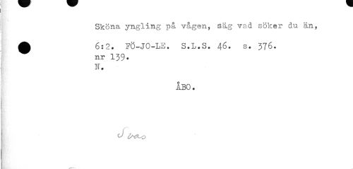 //// Sköna yngling på vågen, säg vad söker du än, //// A 6:2. FÖ-JO-LE. S.L.S. 46. s. 376. //// nr 139. //// N. //// o //// ÅBO. //// CJ ////