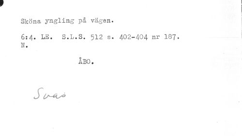 //// Sköna yngling på vägen. //// 6:4. LE. S.L.S. 512 s. 402-404 nr 137. N. //// ÅBO . //// J ////