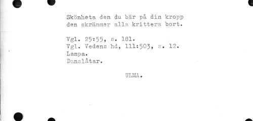 //// Skönheta den du. bär på din kropp den skrämmer alla krittera bort. //// Vgl. 25-:55, s. 181. //// Ygl. Vedens hd, 111:503, s. 12. //// « //// Lampa-Danslåtar. //// UXMÄ . ////