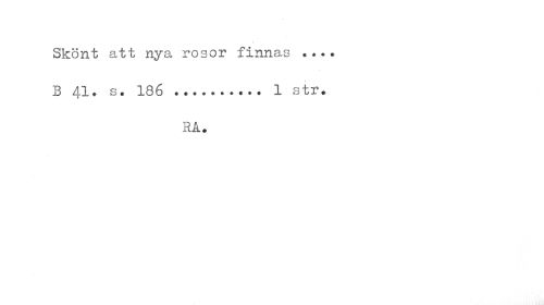 //// Skönt att nya rosor finnas «... B 41. s. 186 ... 1 str. //// RA. ////