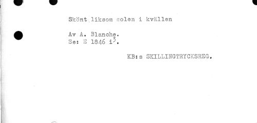 //// Skönt liksom solen i kvällen //// •Av A. Blanche. //// Se: E I846 i-'. //// KB: s SKILLIIGTRYCKSREG, ////