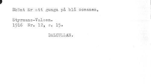 //// Skönt är att gunga på blå oceanen, //// i //// Styrmans-Valsen. //// 1916 Nr. 12, s. 15. //// DALKULLAN. ////